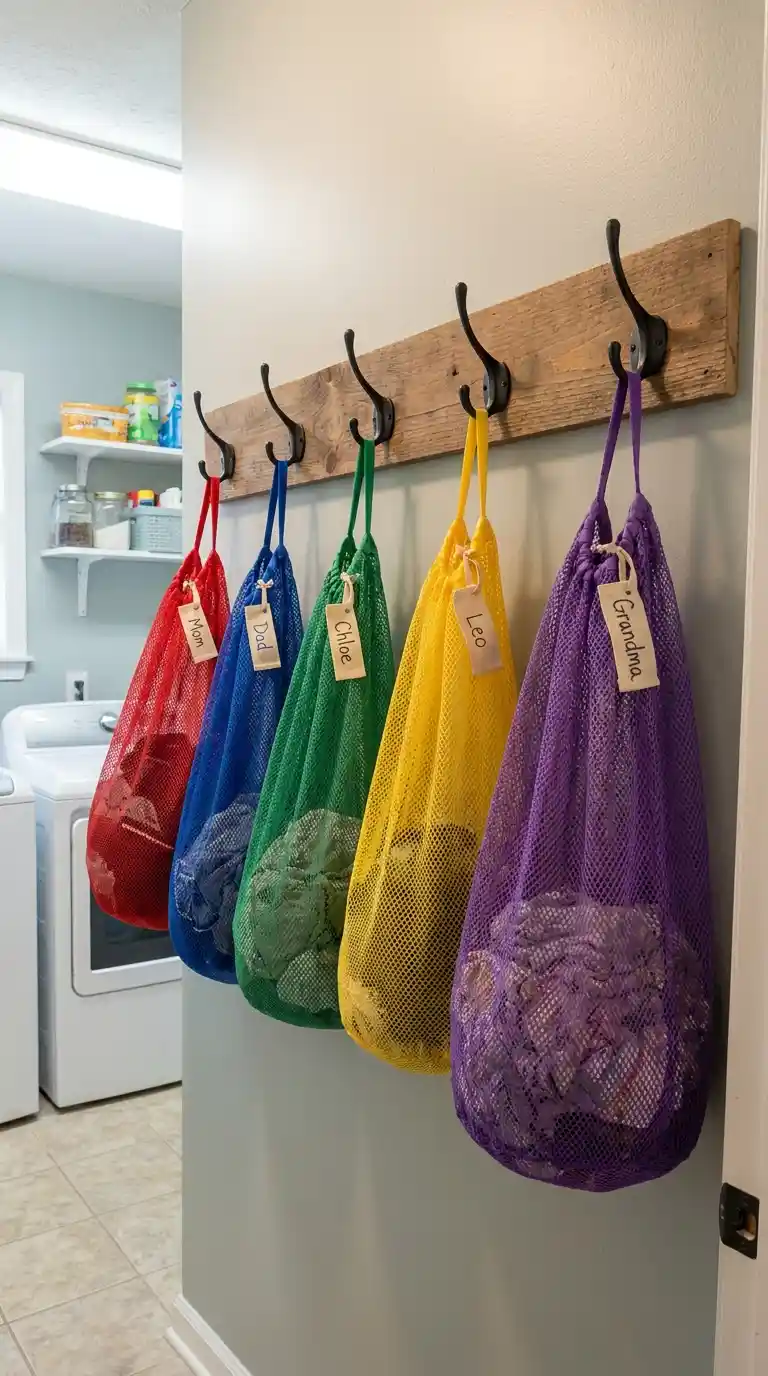 Idea 40: Use color-coded laundry bags for each family member to make sorting and returning laundry easier.