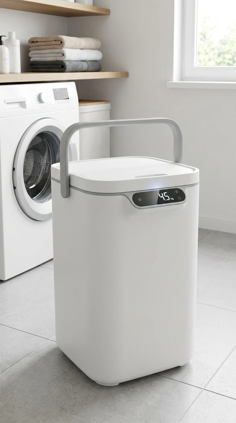 Idea 38: Add a hamper with a built-in scale for tracking laundry weight and load size.