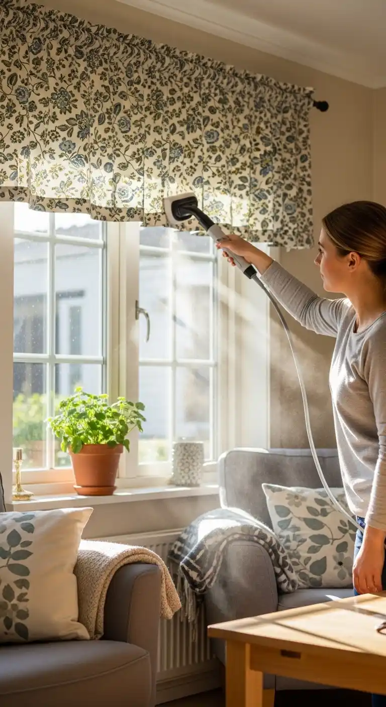Valances often get ignored when it comes to cleaning, but they collect dust just like curtains.