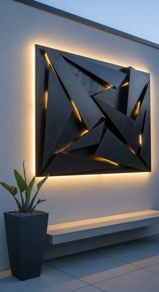 Outdoor lighting transforms wall decor at night. Wall sconces, LED strips, or lanterns add warmth and drama.