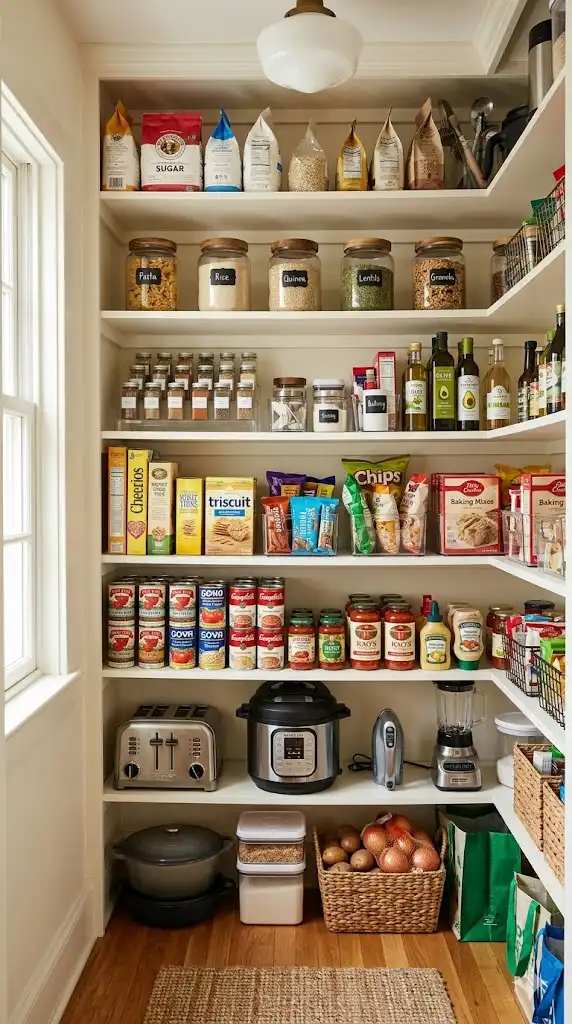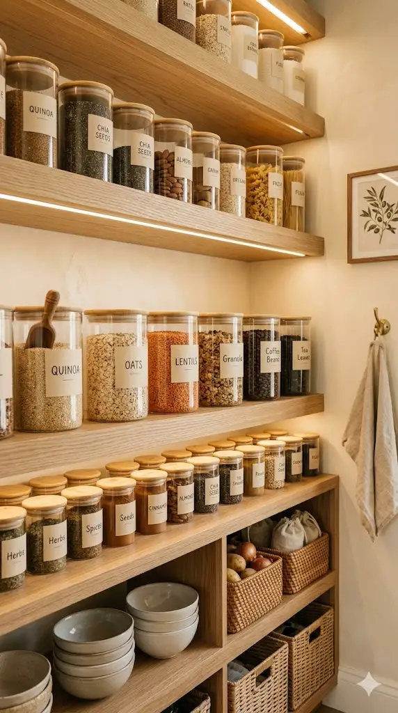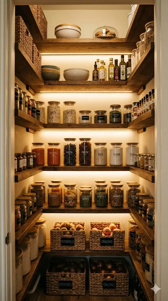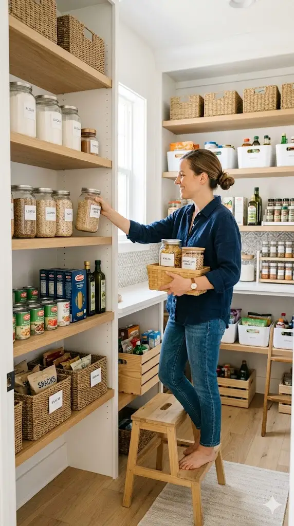 These simple habits make even basic walkin pantry ideas feel premium and functional.