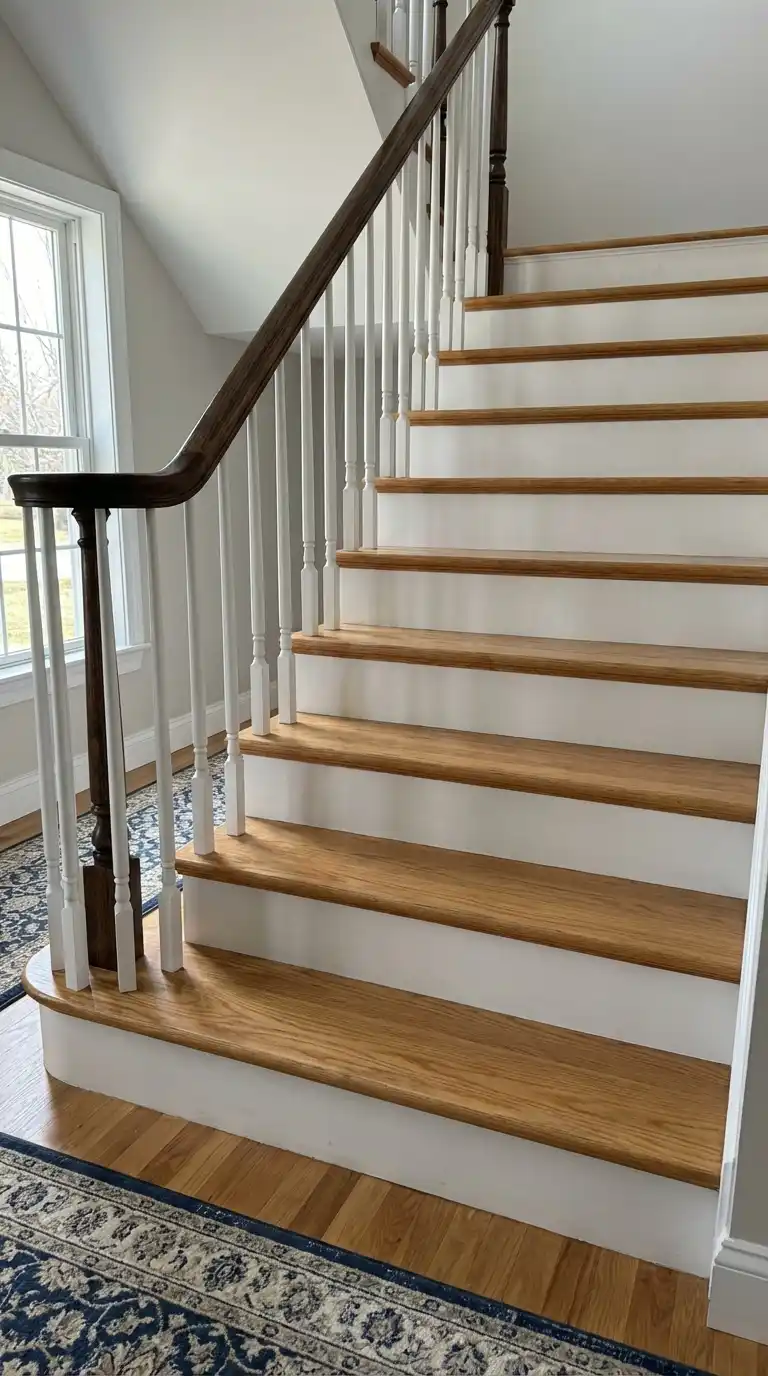 I’ve seen stunning designs with white risers and wooden treads — simple, but incredibly effective.