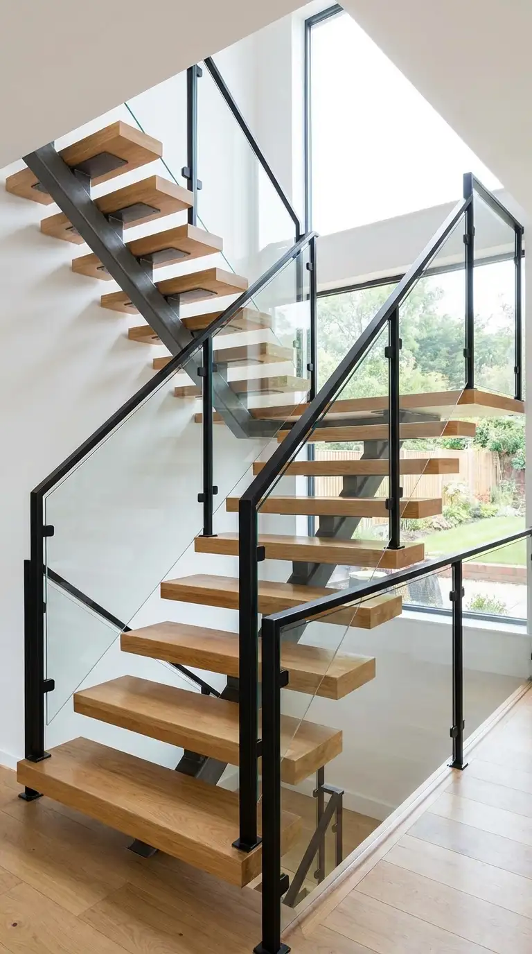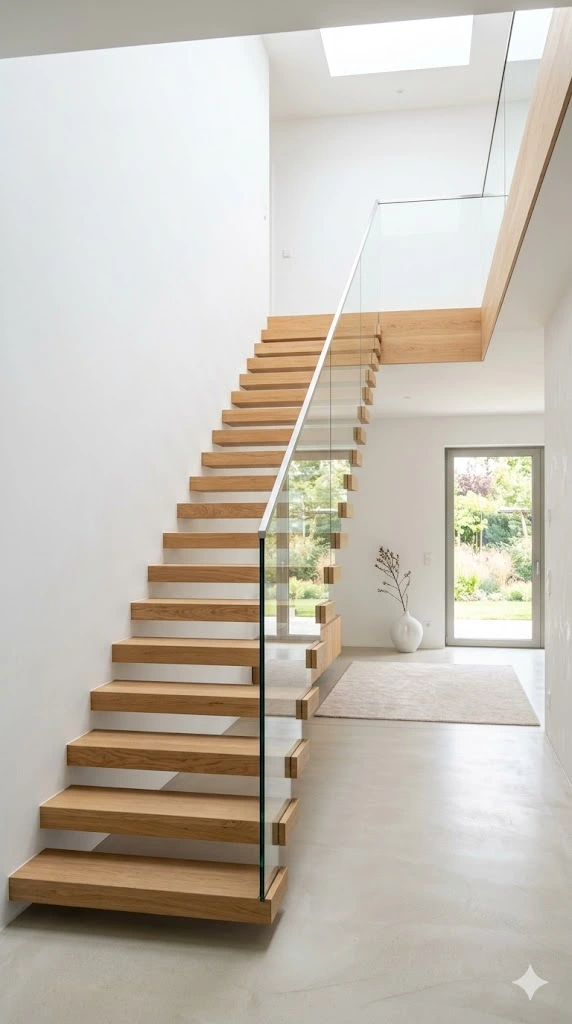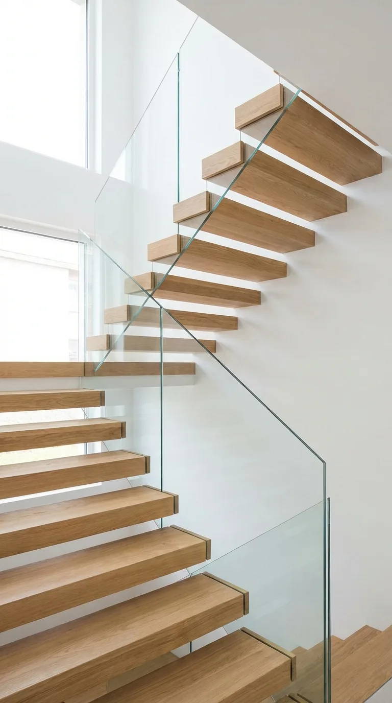 One of the most popular trends right now is the floating staircase. These designs give the illusion that each step is suspended in mid-air. When paired with glass railings, the result is incredibly airy and open perfect for smaller spaces that need visual breathing room.