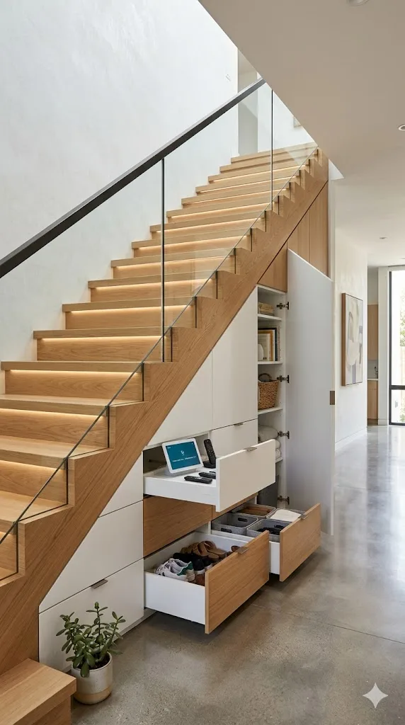 Another clever trick is using the area under the stairs. Think built-in storage, bookshelves, or even a cozy reading nook.